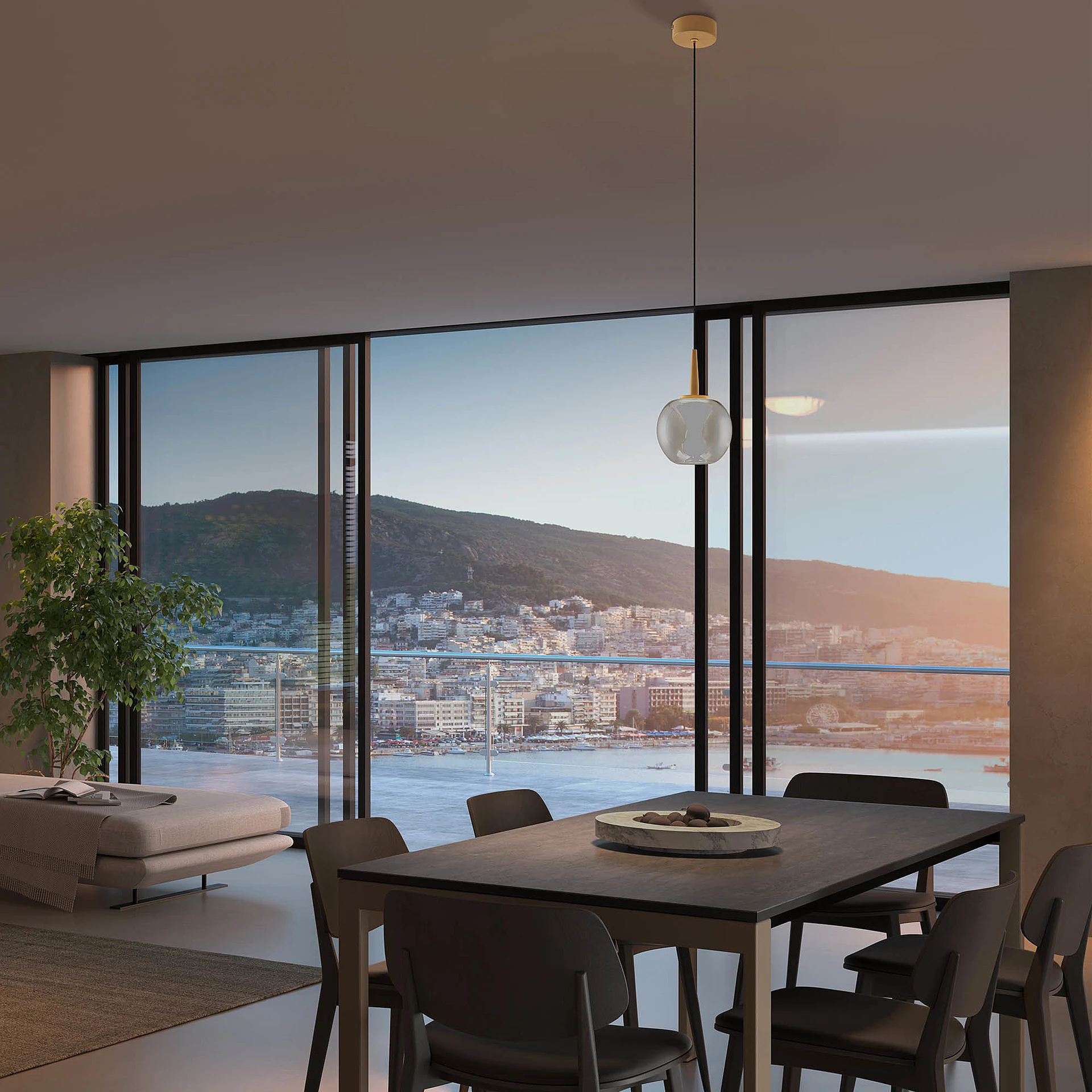Светильник подвесной Mantra Andromeda 9077 от Mantra, для установки на потолок. Материал — металл, цвет золотой, плафон из стекла, цвет плафона бронзовый. Модель имеет 1 лампу, цоколь LED, мощность 5 Вт. Цветовая температура 3000. Степень защиты IP20. Габариты: высота 2000 мм, ширина 130 мм, диаметр 130 мм. Коллекция Andromeda, световой поток — 500.