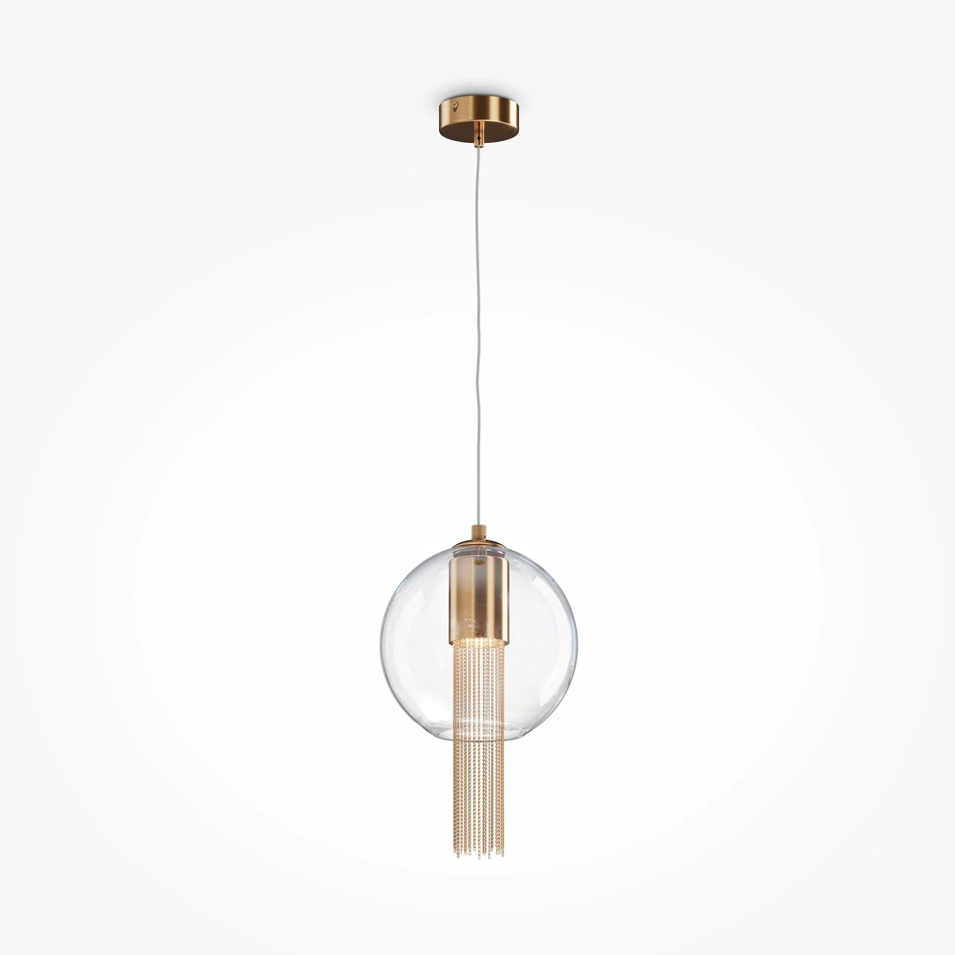 Светильник подвесной Maytoni Flusso P095PL-01BZ от Maytoni, подходит для кухни, для гостиной, в стиле современный. Материал — металл, цвет бронза, форма плафона — шар. Модель имеет 1 лампу, цоколь GU10, мощность 40 Вт. Направление света — вниз. Декор — бахрома, коллекция Flusso.