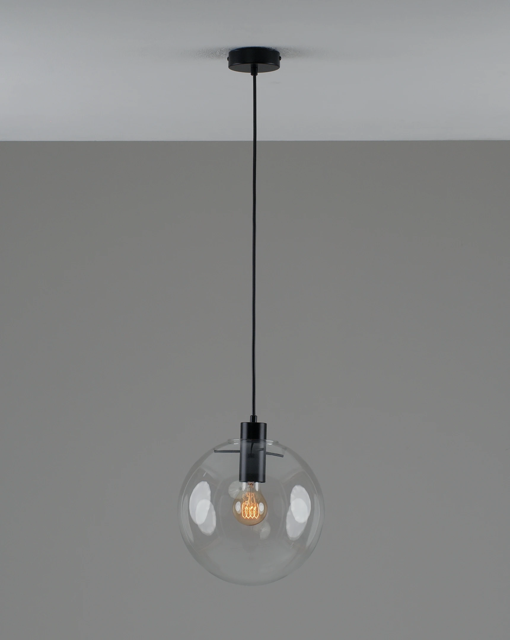 Светильник подвесной Moderli Aurora V11539-1P от Moderli, подходит для кухни, для гостиной, в стиле современный. Цвет черный, плафон из стекло, цвет плафона прозрачный, форма плафона — шар. Модель имеет 1 лампу, цоколь E27, мощность 60 Вт, площадь освещения до 3 кв. м. Направление света — вниз. Габариты: высота 1300 мм, ширина 250 мм, глубина 250 мм. Коллекция Aurora.