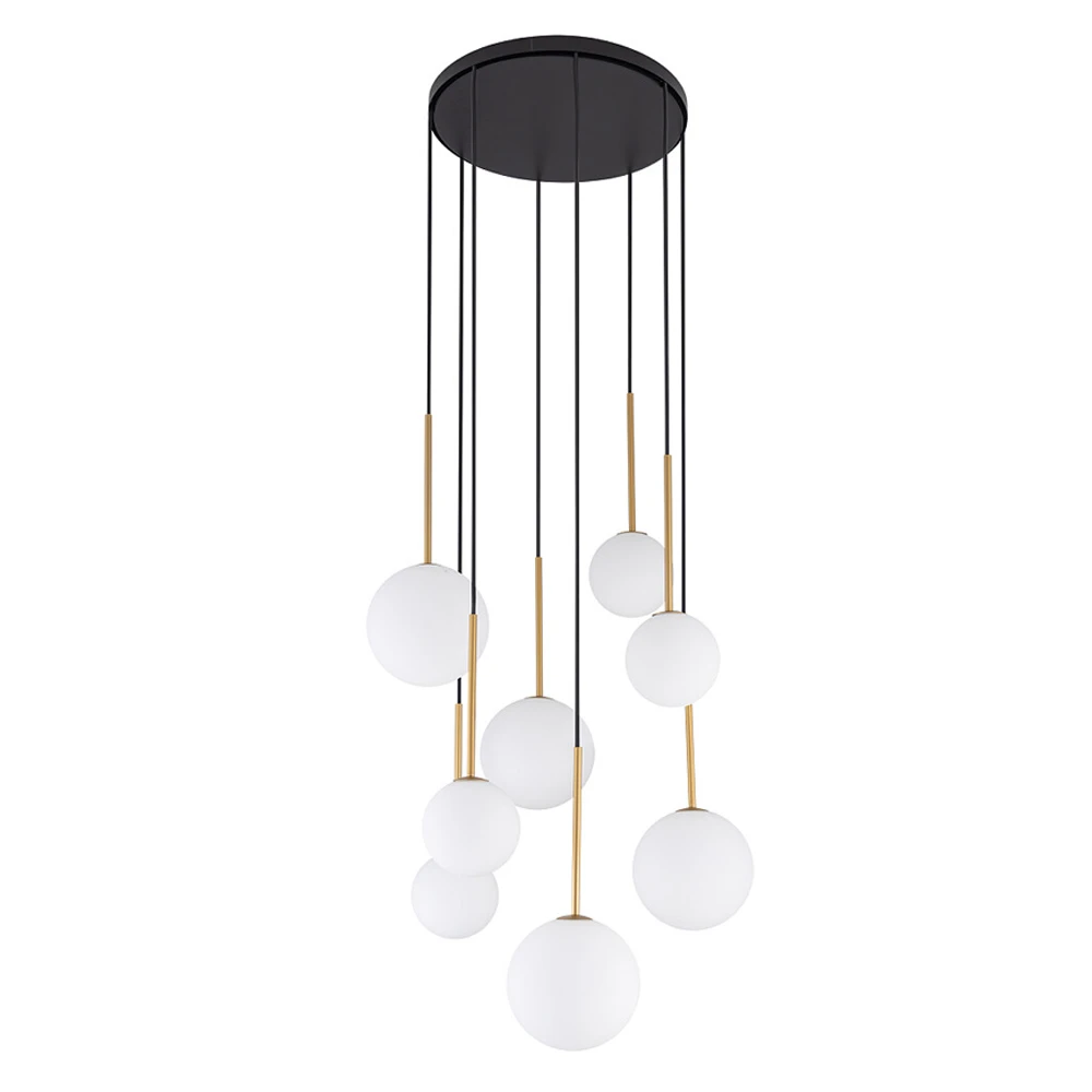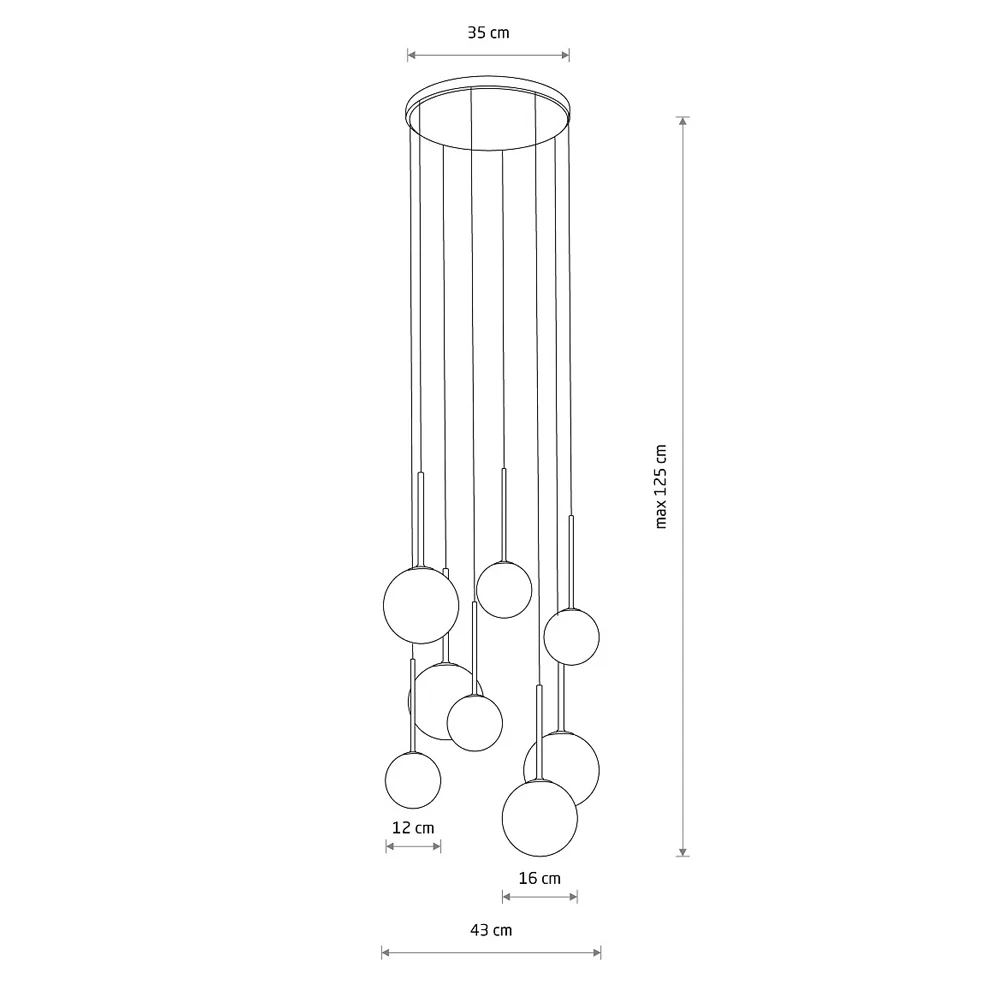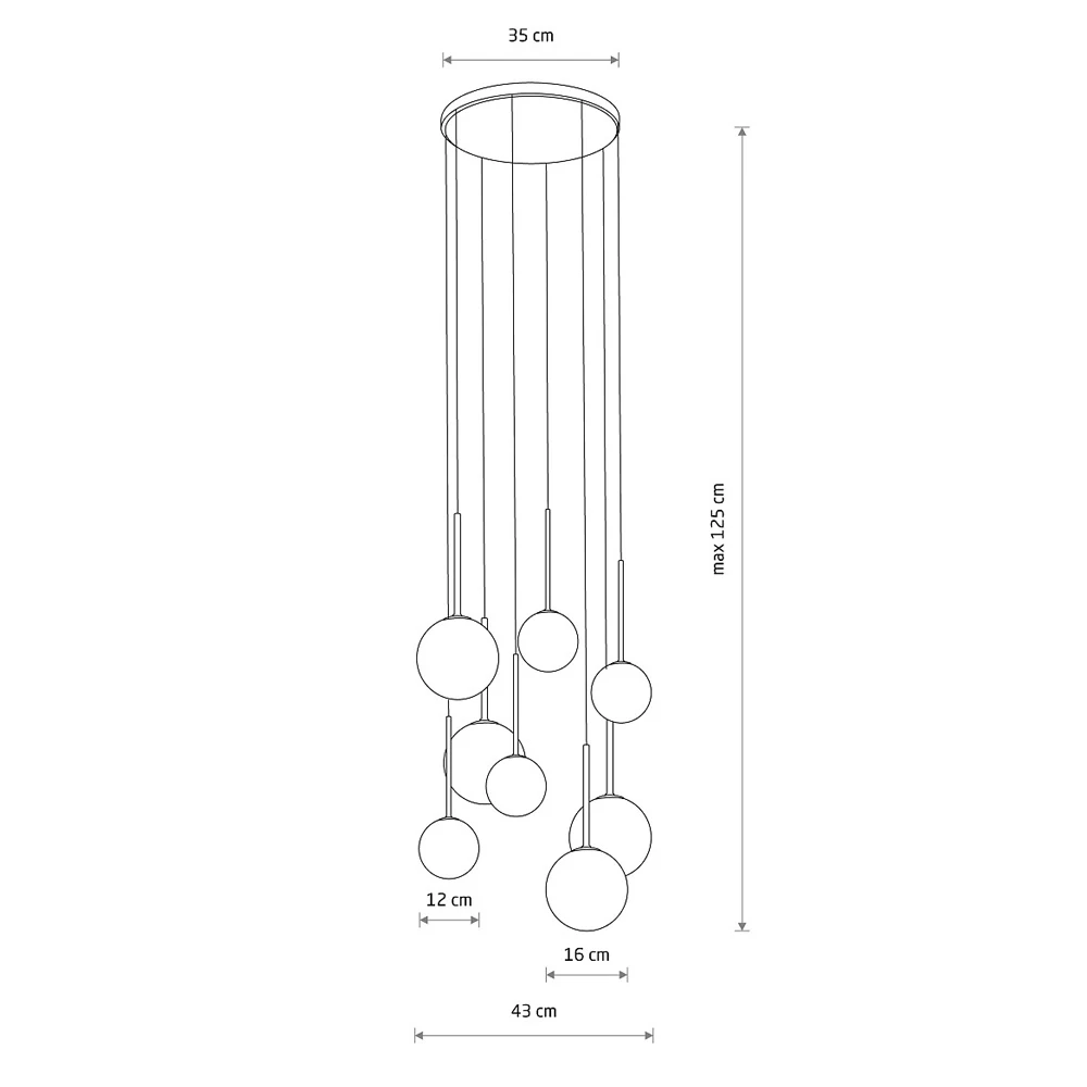 Светильник подвесной Nowodvorski Karo 10934 от Nowodvorski, для установки на потолок. Материал — сталь, цвет черный, плафон из стекла, цвет плафона белый, форма плафона — шар. Модель имеет 8 ламп, цоколь G9, мощность 96 Вт. Направление света — вниз. Степень защиты IP20. Габариты: высота 1250 мм, ширина 430 мм, диаметр 430 мм. Коллекция Karo.