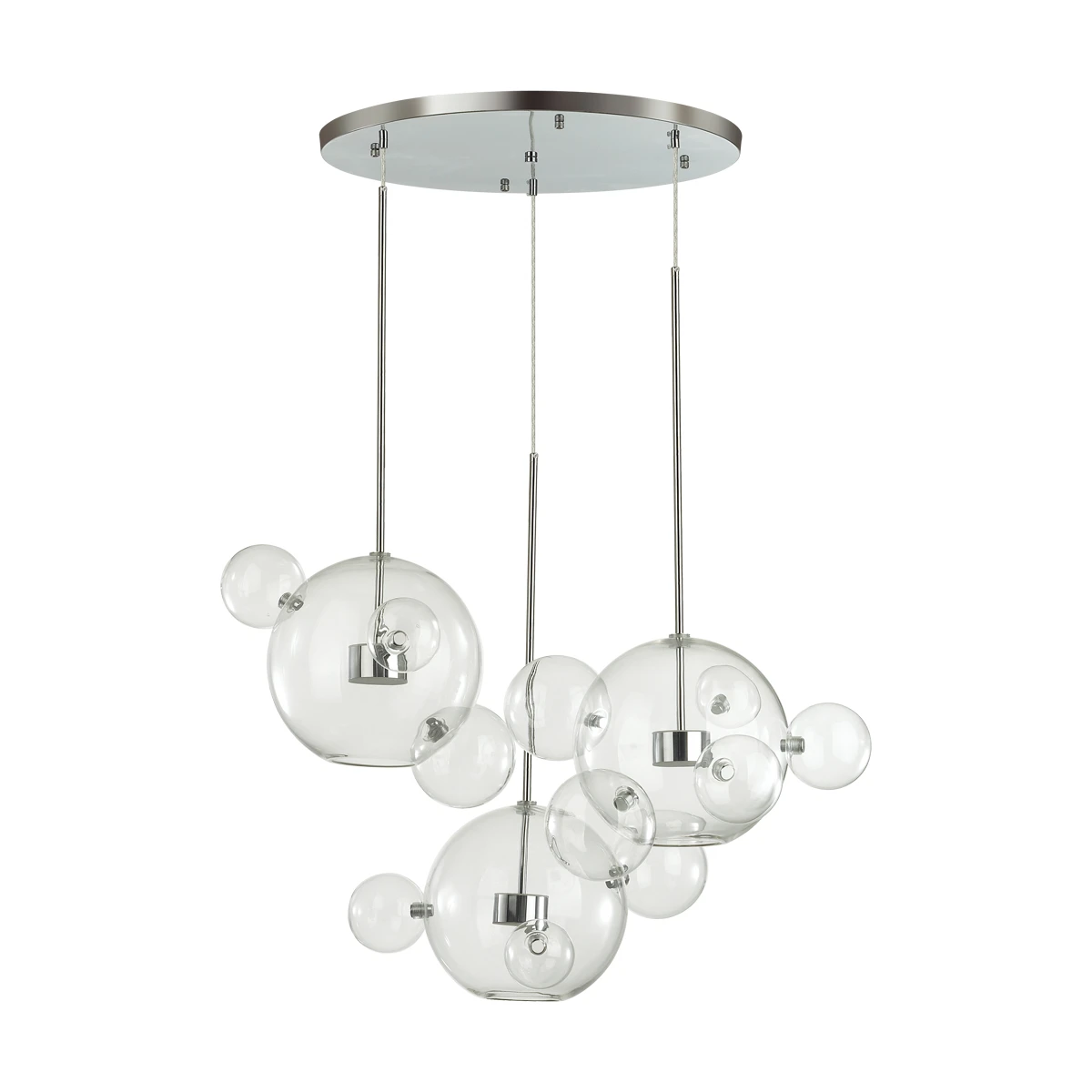 Светильник подвесной Odeon Light Bubbles 4802/36LA от Odeon Light, подходит для гостиной, в стиле современный, хай-тек. Материал — металл, цвет хром, плафон из стекло, цвет плафона прозрачный, форма плафона — шар. Модель имеет 1 лампу, цоколь LED, мощность 12 Вт. Габариты: высота 1800 мм, ширина 800 мм, диаметр 800 мм.
