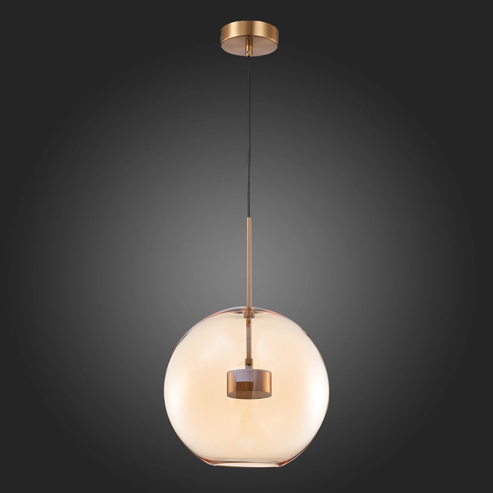 Светильник подвесной ST Luce Bopone SL1133.323.01 от ST Luce, подходит для гостиной, в стиле современный. Материал — металл, цвет латунь, плафон из стекла, цвет плафона коньячный, форма плафона — шар. Модель имеет 1 лампу, цоколь LED. Габариты: высота 1000 мм, ширина 300 мм, диаметр 300 мм.