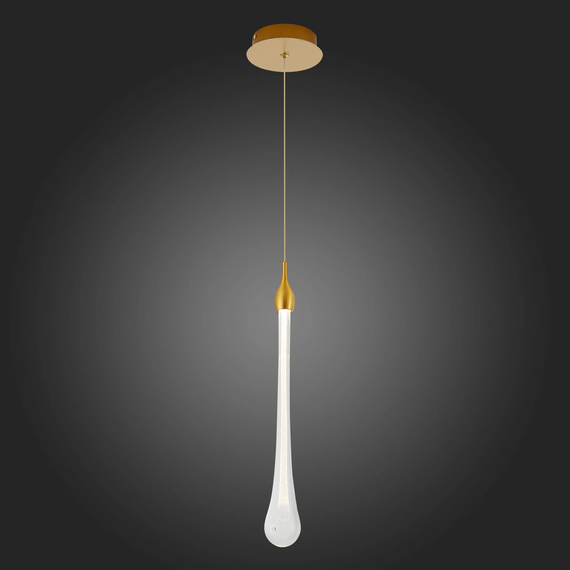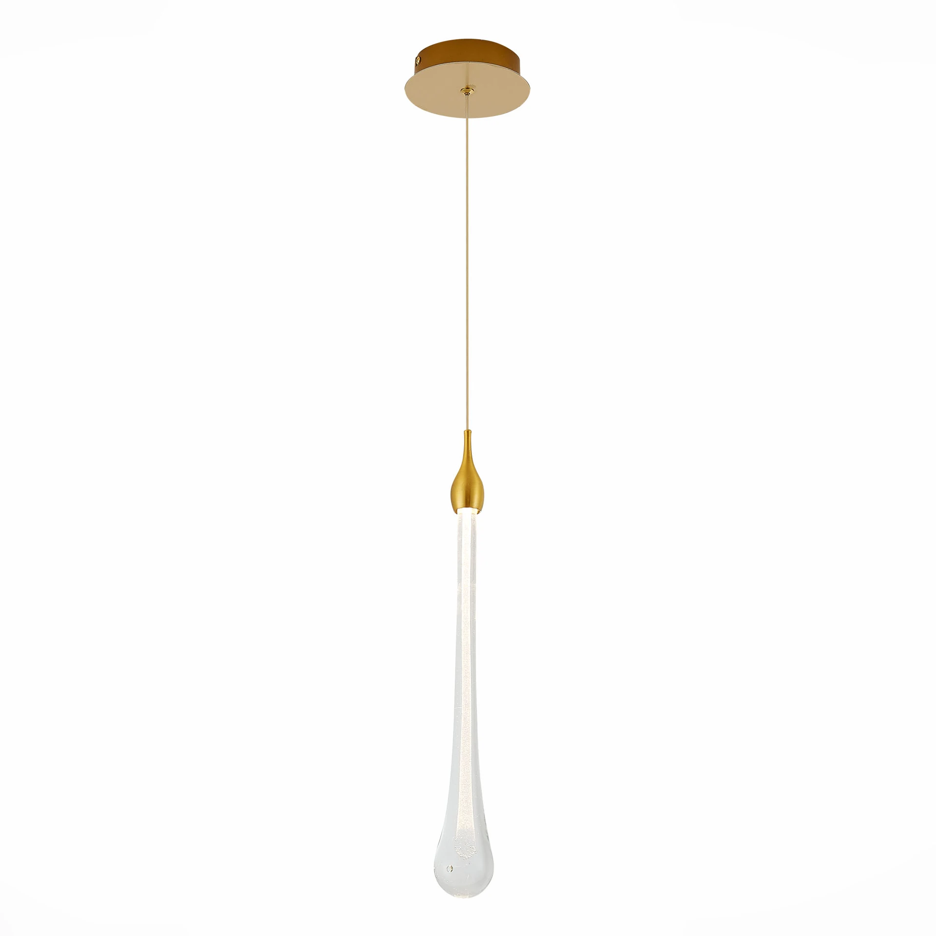 Светильник подвесной ST Luce Faenza SL6103.203.01 от ST Luce, подходит для гостиной, в стиле современный. Материал — металл, цвет золотистый, плафон из хрусталь, цвет плафона прозрачный, форма плафона — капли. Модель имеет 1 лампу, цоколь LED, мощность 3 Вт. Крепление — планка. Габариты: высота 1200 мм, ширина 130 мм, диаметр 130 мм. Коллекция Faenza, световой поток — 225.