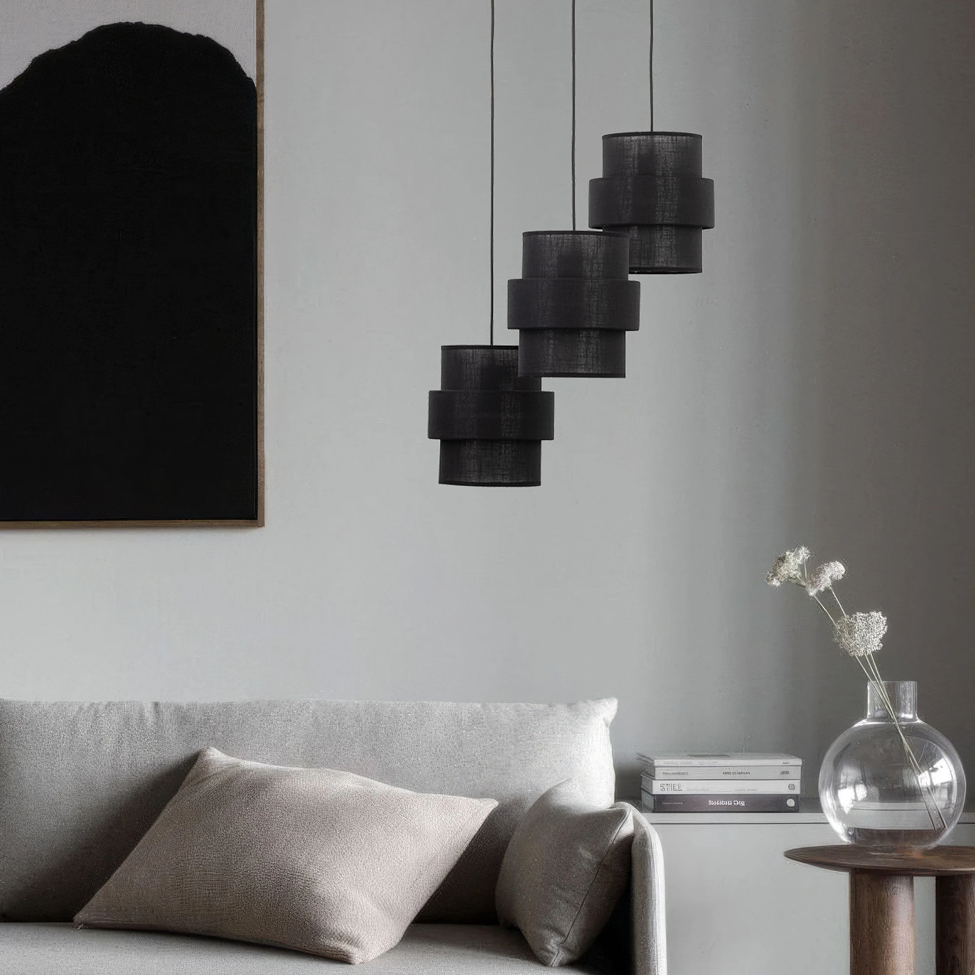 Светильник подвесной TK Lighting Calisto 5981 Calisto от TK Lighting, подходит для гостиной, для спальни, в стиле современный. Материал — металл, цвет черный, плафон из ткань, форма плафона — цилиндр. Модель имеет 3 лампы, цоколь E27, мощность 3 Вт. Степень защиты IP40, класс энергоэффективности A. Габариты: высота 1450 мм, ширина 450 мм. Коллекция Calisto, примечание — совместим с умным выключателем;совместим с умным реле, класс защиты от поражения электрическим током — I.