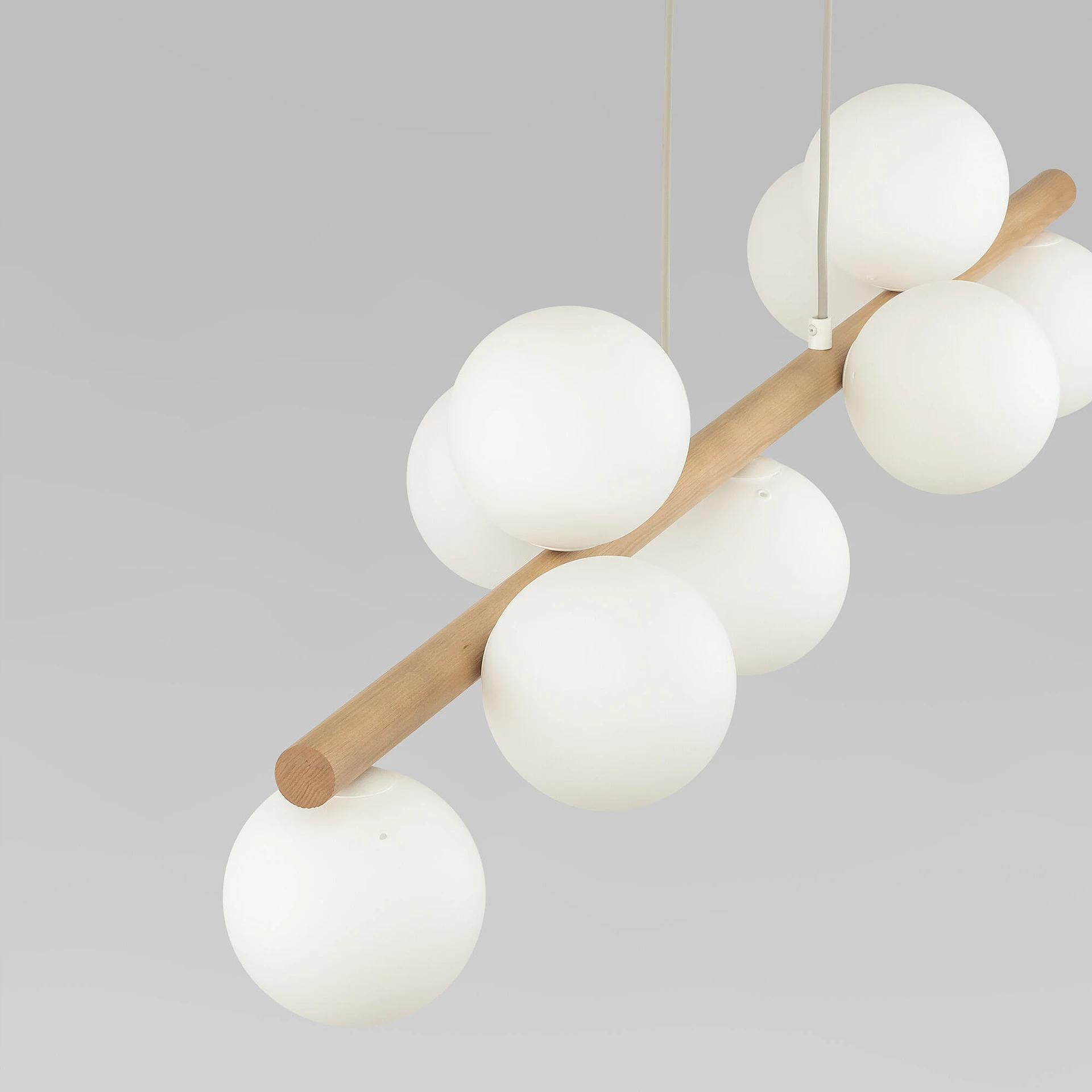 Светильник подвесной TK Lighting Estera Wood 5906 Estera Wood от TK Lighting, подходит для гостиной, для спальни, в стиле современный, скандинавский. Материал — металл, цвет светлое дерево, плафон из стекла, цвет плафона белый, форма плафона — шар. Модель имеет 9 ламп, цоколь G9. Габариты: высота 1250 мм, ширина 280 мм. Примечание — совместим с умным выключателем;совместим с умным реле, класс защиты от поражения электрическим током — I.