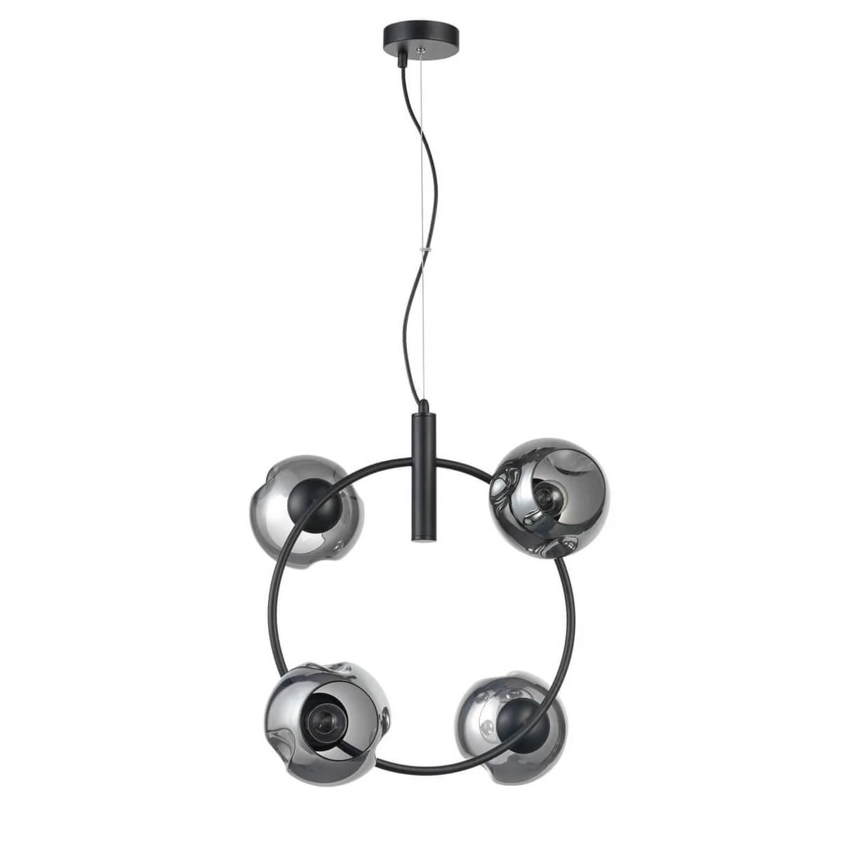 Светильник подвесной Vele Luce Astoria VL5002P42 от Vele Luce, подходит для гостиной, в стиле хай-тек. Материал — металл, цвет черный, плафон из стекла, цвет плафона дымчатый, форма плафона — шар. Модель имеет 4 лампы, цоколь E27, мощность 240 Вт. Направление света — равномерное. Степень защиты IP20. Габариты: высота 1200 мм, ширина 340 мм. Коллекция Astoria.