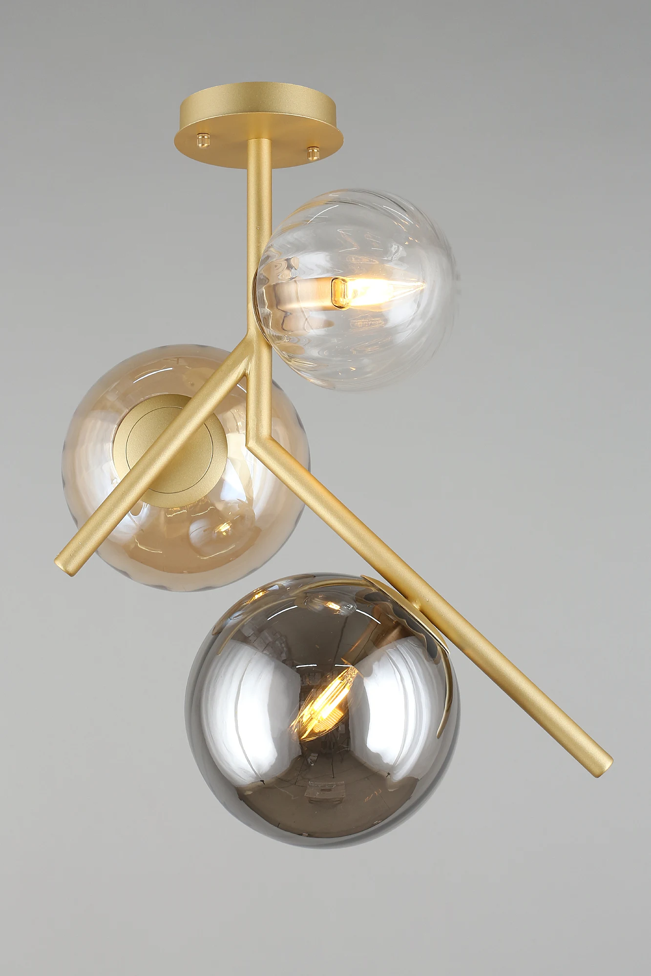 Светильник потолочный Aployt Elayn APL.900.07.03 от Aployt, подходит для гостиной, в стиле современный. Материал — металл, цвет бронза, плафон из стекла, цвет плафона разноцветный, форма плафона — шар. Модель имеет 3 лампы, цоколь E14, мощность 120 Вт. Крепление — планка. Степень защиты IP20. Габариты: высота 650 мм, ширина 446 мм. Коллекция Elayn, потолочный светильник — Изогнутые, Вьющиеся, потолочный светильник — Много Шаров.