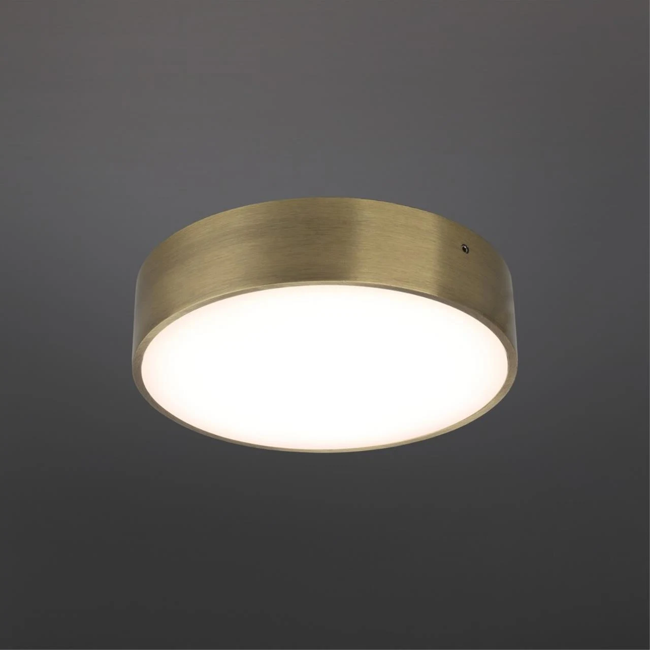 Светильник потолочный Aployt Evon APL.0114.29.18 от Aployt, подходит для гостиной, для прихожей, для кабинета, в стиле современный. Материал — алюминий, цвет античная латунь. Модель имеет 1 лампу, цоколь LED, мощность 18 Вт. Полностью светодиодная, цветовая температура нейтральный (4000k), крепление — планка. Степень защиты IP20. Габариты: высота 36 мм, ширина 150 мм, диаметр 150 мм. Коллекция Evon, угол рассеивания — 120, световой поток — 1550.