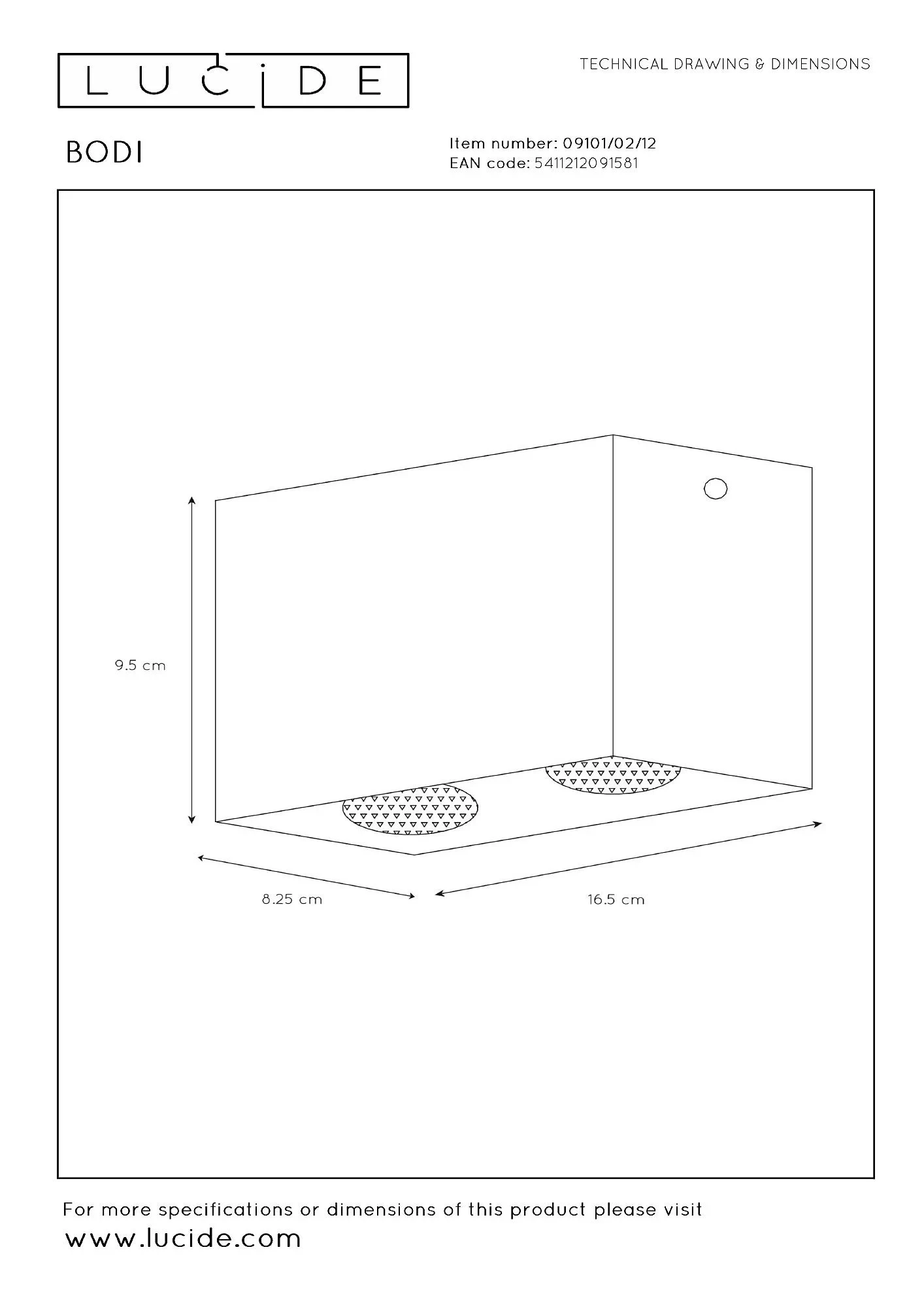 Накладной светильник Lucide Bodi 09101/02/12 от Lucide, подходит для прихожей, в стиле современный. Материал — алюминий, цвет белый, форма плафона — выпуклые. Модель имеет 2 лампы, цоколь GU10, мощность 50 Вт. Поддержка диммера. Степень защиты IP20. Габариты: высота 95 мм, ширина 80 мм. Коллекция Bodi.