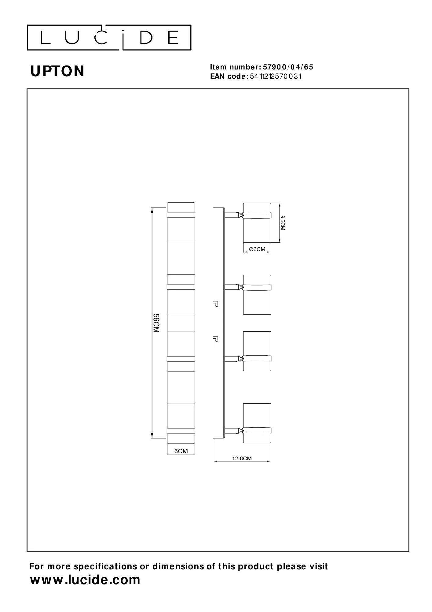 На Светильник спот Lucide Upton 57900/04/65 от Lucide действует официальная гарантия производителя — от 2 лет и более. По вопросам гарантии в Беларуси обращайтесь по телефону +375 (29) 801 91 06 или на info@marketsveta.by.