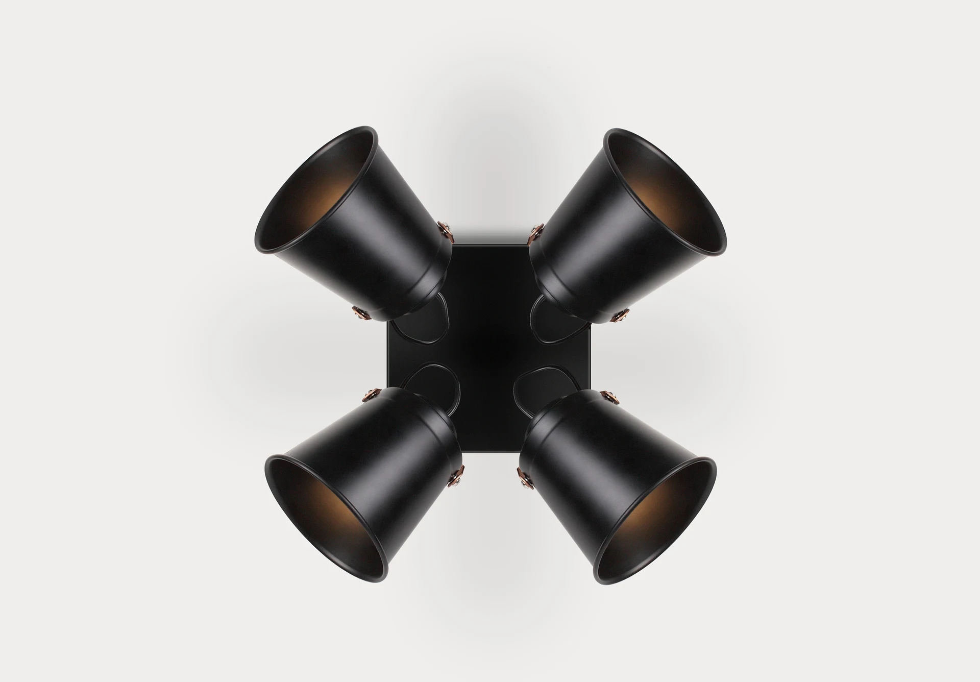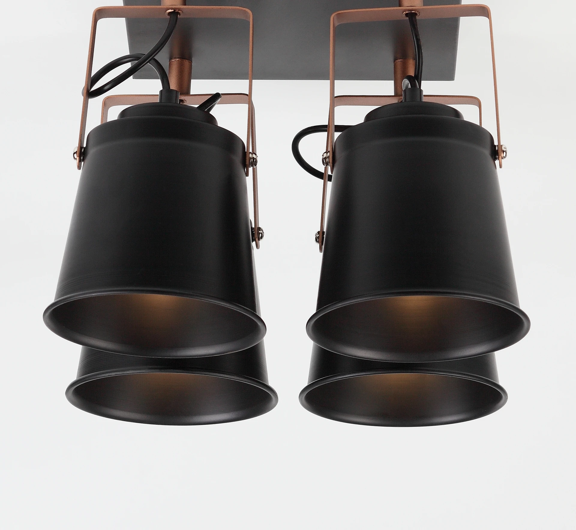 Светильник спот Rivoli Acuto 7015-704 от Rivoli, подходит для гостиной, в стиле лофт. Материал — металл, цвет черный, форма плафона — цилиндр. Модель имеет 4 лампы, цоколь E27, мощность 40 Вт, площадь освещения до 12 кв. м. Поворотный, крепление — планка. Степень защиты IP20. Габариты: высота 230 мм, ширина 400 мм. Коллекция Acuto, споты — Металлический плафон, споты — Поворотные.
