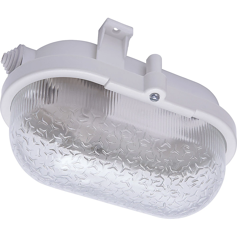 Уличный потолочный светильник Feron НБП 01-60-012 41405 от Feron, в стиле современный. Материал — пластик, цвет белый, плафон из стекла, форма плафона — овал. Модель имеет 1 лампу, цоколь E27, мощность 60 Вт. Степень защиты IP54. Габариты: высота 115 мм, ширина 120 мм. Коллекция НБП 01-60-012.