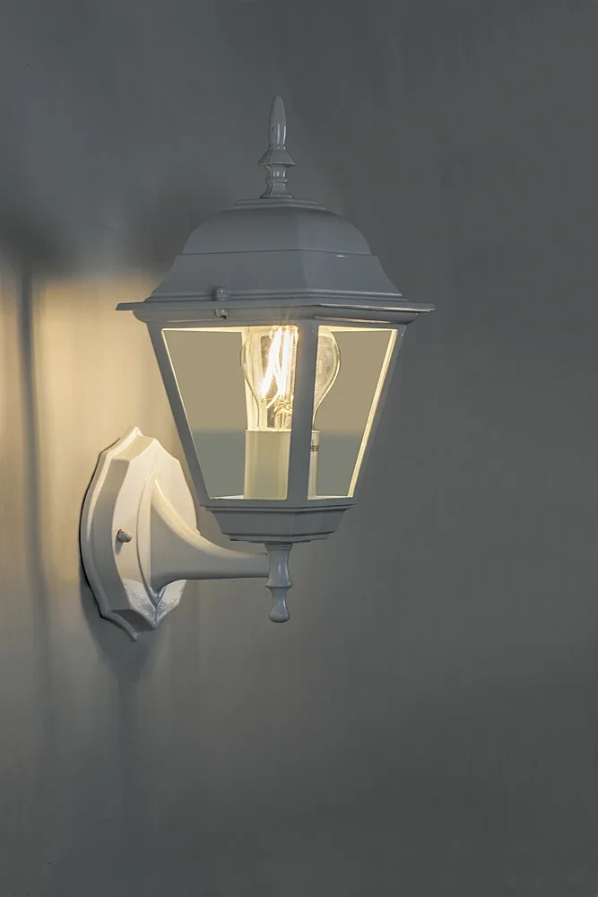 Уличный настенный светильник Feron Классика 11023 от Feron, в стиле современный, классика. Материал — металл, цвет белый, форма плафона — четырехгранник. Модель имеет 1 лампу, цоколь E27. Степень защиты IP44. Габариты: высота 405 мм, ширина 185 мм. Декор — классический, коллекция Классика, настенные уличные — Стеклянные плафоны, настенные уличные — Классический.