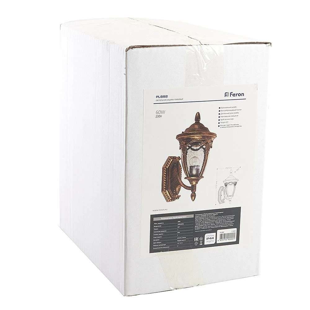 На Уличный настенный светильник Feron Будапешт 11693 от Feron действует официальная гарантия производителя — от 2 лет и более. По вопросам гарантии в Беларуси обращайтесь по телефону +375 (29) 801 91 06 или на info@marketsveta.by.