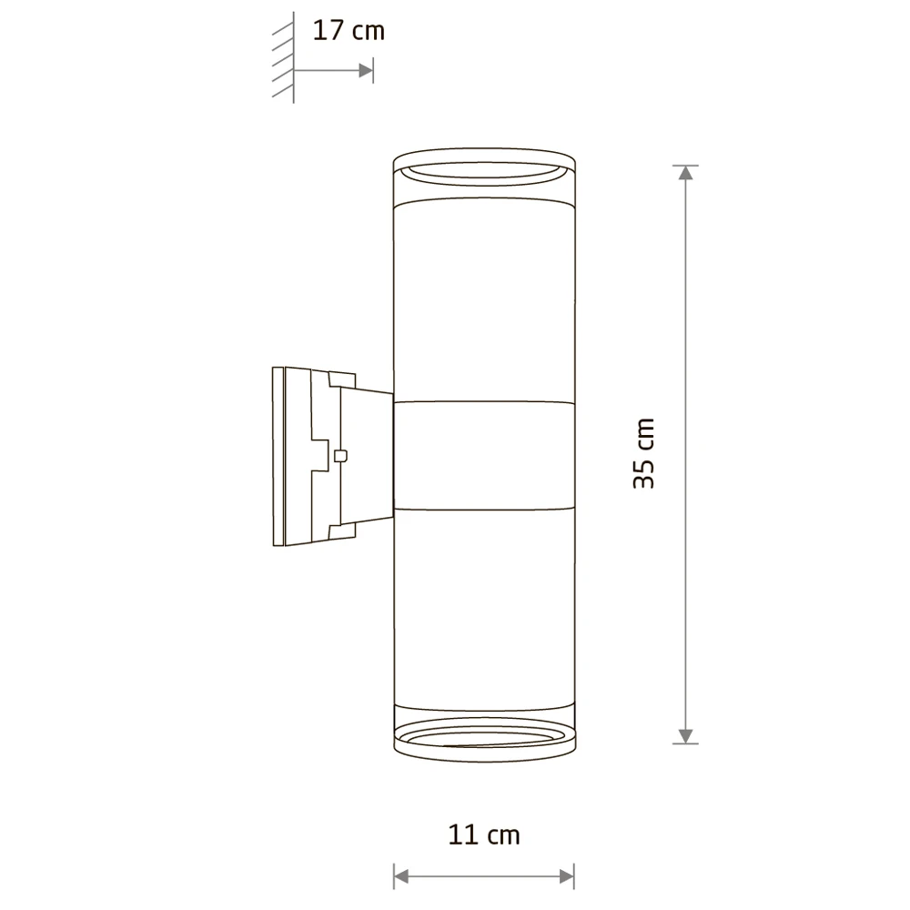 Уличный настенный светильник Nowodvorski Rock Pro 10688 от Nowodvorski, для установки на стену. Цвет серый, плафон из пластик, форма плафона — цилиндр. Модель имеет 2 лампы, цоколь LED, мощность 50 Вт. Полностью светодиодная, направление света — вверх/вниз. Степень защиты IP44. Габариты: высота 350 мм, ширина 110 мм, диаметр 110 мм, глубина 170 мм. Коллекция Rock Pro.