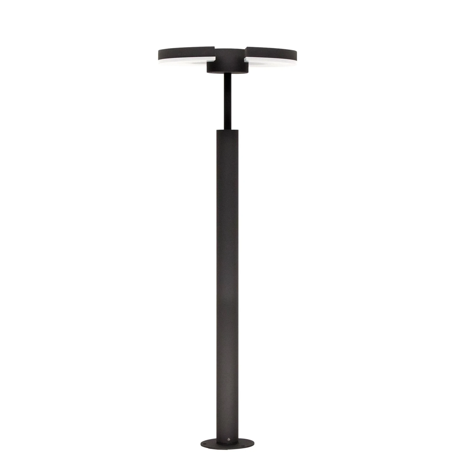 Уличный наземный светильник Citilux CLU03B2 от Citilux, в стиле хай-тек. Материал — металл, цвет графит, цвет плафона белый. Модель имеет 2 лампы, цоколь LED, мощность 12 Вт. Цветовая температура нейтральный (4000k), крепление — на основание. Степень защиты IP54. Габариты: высота 910 мм, ширина 280 мм, диаметр 280 мм. Коллекция Garda, световой поток — 800.