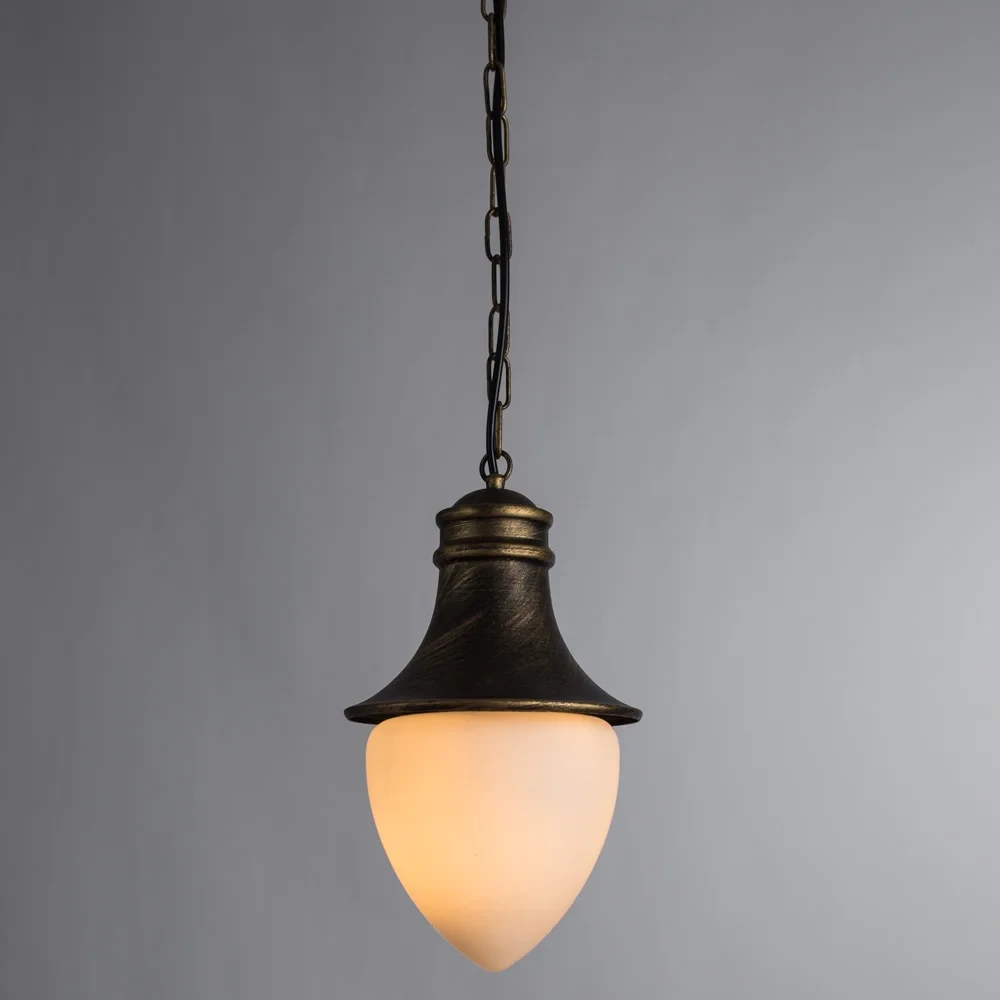 Уличный подвесной светильник Arte Lamp Vienna A1317SO-1BN от Arte Lamp, в стиле классика, ретро. Материал — алюминий, цвет черно-золотой, плафон из стекла, цвет плафона белый, форма плафона — матовый. Модель имеет 1 лампу, цоколь E27, мощность 75 Вт. Крепление — крюк. Степень защиты IP44. Габариты: высота 810 мм, ширина 190 мм. Коллекция Vienna.