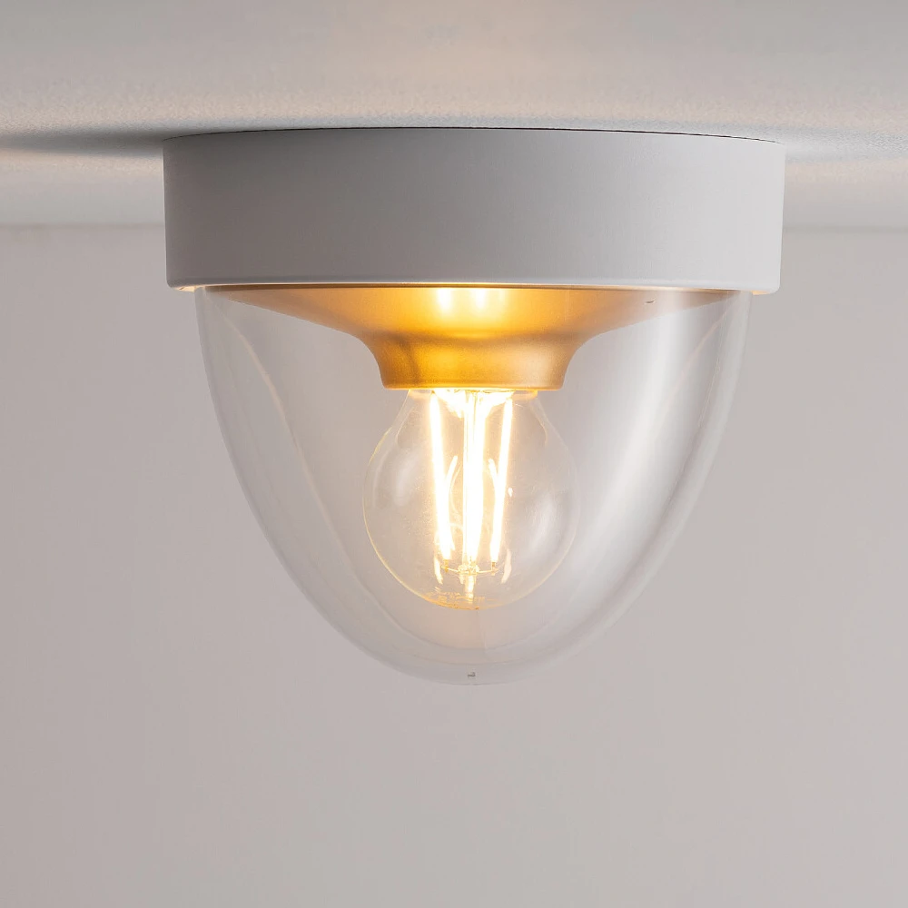 Уличный потолочный светильник Nowodvorski Nook 7970 от Nowodvorski, для установки на стену. Материал — пластик, цвет белый, цвет плафона прозрачный, форма плафона — круглый плафон. Модель имеет 1 лампу, цоколь E27, мощность 10 Вт. Направление света — вниз. Степень защиты IP44. Габариты: высота 155 мм, ширина 180 мм. Коллекция Nook, потолочные уличные — Круглые.