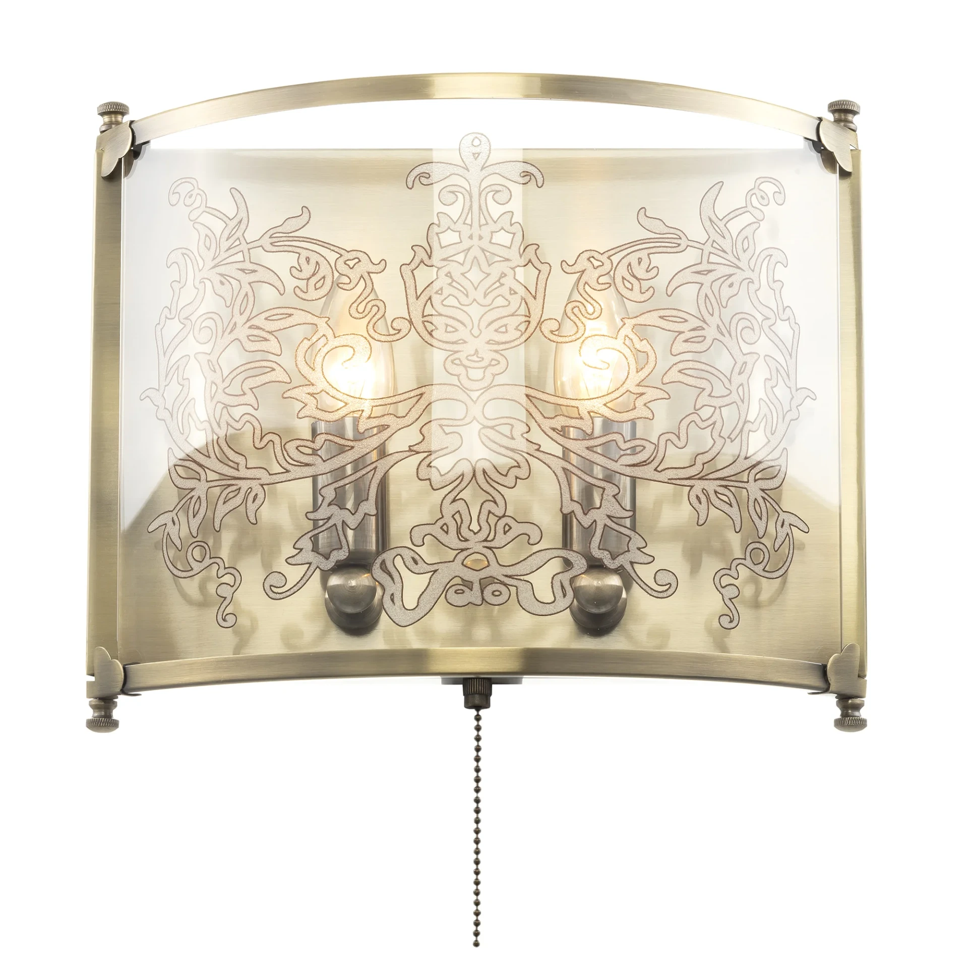 Настенное бра Citilux Версаль CL408323 от Citilux, подходит для гостиной, в стиле классика, восточный. Материал — металл, цвет бронза, плафон из стекла, цвет плафона прозрачный, форма плафона — с узором. Модель имеет 2 лампы, цоколь E14, мощность 120 Вт. Габариты: высота 280 мм, ширина 330 мм. Коллекция Версаль.