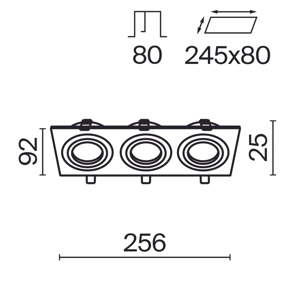 Встраиваемый светильник Maytoni Atom DL024-2-03B от Maytoni, подходит для кухни, для гостиной, для спальни, для детской, для прихожей, для кабинета, в стиле современный, хай-тек. Материал — алюминий, цвет черный, форма плафона — прямоугольные. Модель имеет 3 лампы, цоколь GU10, мощность 10 Вт. Поворотный. Степень защиты IP20. Габариты: высота 25 мм, ширина 256 мм, диаметр 245х80. Коллекция Atom, вид — Квадрат.