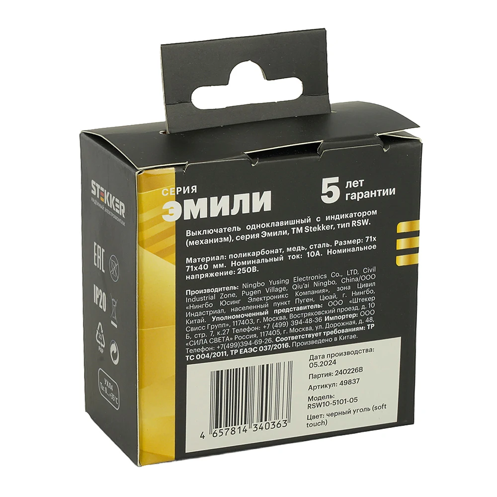 На Выключатель Stekker Эмили 49837 от Stekker действует официальная гарантия производителя — от 2 лет и более. По вопросам гарантии в Беларуси обращайтесь по телефону +375 (29) 801 91 06 или на info@marketsveta.by.